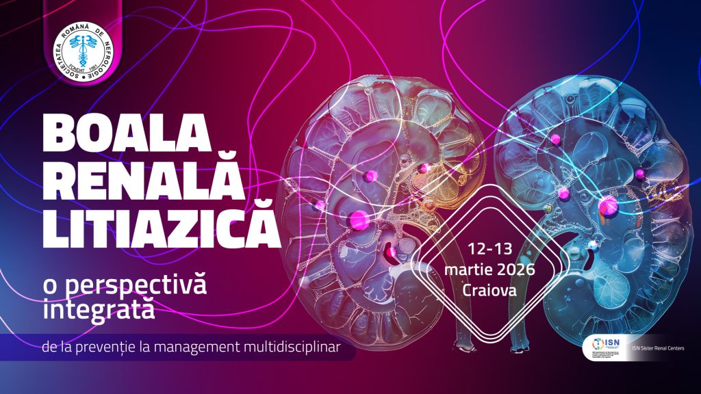 Avem plăcerea de a vă invită la conferința „Boala renală litiazică – o perspectivă integrată: de la prevenție la management multidisciplinar”, care va avea loc în perioada 12–13 martie 2026. Evenimentul își propune să aducă împreună profesioniști din nefrologie, urologie, nutriție, medicină internă și din alte domenii conexe, într-un cadru deschis și colaborativ.