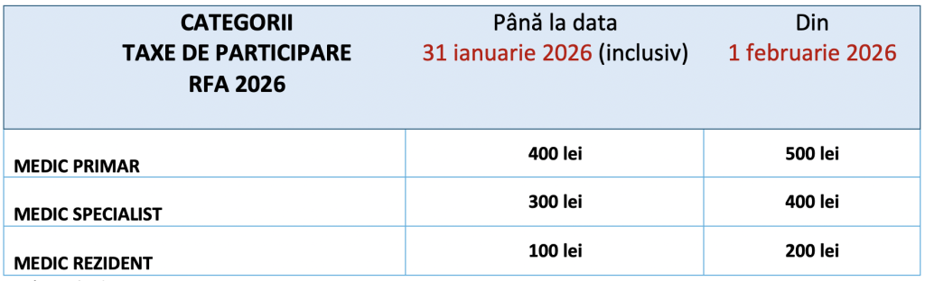 *Taxele de participare nu conțin TVA.